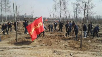 當(dāng)天下午1點(diǎn)半,到達(dá)指定位置后,大家立即行動(dòng)起來(lái),有的挽起袖子,有的脫去外套,拿起平鍬,奮力鏟土。大家你抬樹(shù)、我扶樹(shù)、他填土,彼此之間互相幫助,配合默契,干得熱火朝天,都覺(jué)得我們種的不僅僅是樹(shù)木,更是城市環(huán)境的未來(lái)與希望。經(jīng)過(guò)一個(gè)半小時(shí)的“奮戰(zhàn)”,240棵銀杏樹(shù)整齊地展現(xiàn)在大家面前。雖然大家面露疲色、汗流浹背,但興奮與自豪之情仍溢于言表。