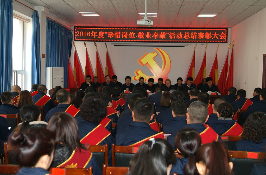 2月15日上午9時(shí),自來水公司2016年度“珍惜崗位、敬業(yè)奉獻(xiàn)”活動(dòng)總結(jié)表彰大會(huì)在高唱《國歌》聲中隆重開幕。先進(jìn)單位、先進(jìn)集體、先進(jìn)班組代表和39名先進(jìn)個(gè)人以及公司基層副職以上干部參加了會(huì)議。住建委黨委委員、副主任張庭政,政治部主任張澤起到會(huì)祝賀并講話。會(huì)議由公司黨委書記張旭濱主持。