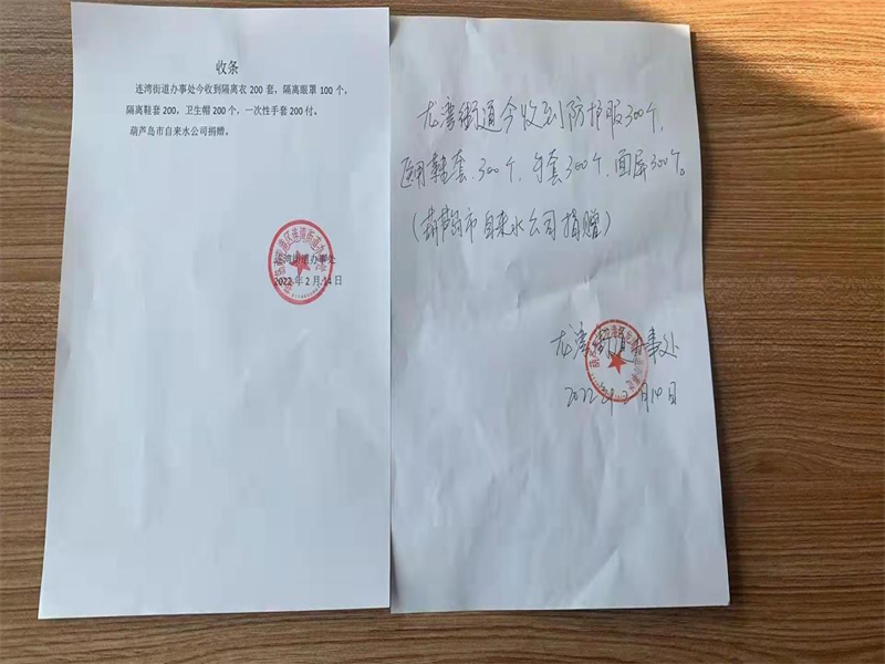 肩上有擔當。郭明義愛心團隊葫蘆島市自來水公司分隊和葫蘆島市城鎮(zhèn)供水協(xié)會主動扛起社會責任,向綏中縣、龍港區(qū)、連山區(qū)、興城市、南票區(qū)、楊家杖子經(jīng)濟開發(fā)區(qū)和葫蘆島市防疫指揮部捐贈虹螺山泉礦泉水總計一萬箱,助力疫情防控工作,奉獻愛心。葫水科技有限公司代表葫蘆島市自來水公司向龍港區(qū)龍灣街道辦事處、連灣街道辦事處捐贈防護服500套、隔離面罩400個、醫(yī)用鞋套500副、一次性手套500副及衛(wèi)生帽200個。公司副經(jīng)理楊麗雪個人出資一萬余元為茨山社區(qū)、新風社區(qū)、首創(chuàng)龍灣、麗水陽光物業(yè)購置方便面30箱、面包10箱、香腸10箱、礦泉水100件、醫(yī)用口罩5000余個、防護服30套、消毒液6桶。公司設(shè)計院向青青家園社區(qū)捐贈N95口罩500只;綜合部員工闞丹向企業(yè)家協(xié)會捐贈電熱水壺5個、暖水袋20個、加熱鞋墊20副;黨委工作部員工王莉莉向騰飛社區(qū)捐贈方便面2箱、面包1箱、香腸1箱、鹽焗雞蛋1箱。一件件防疫物資承載著擔當與愛心,彰顯著眾志成城、抗擊疫情的決心與信心,凝聚起共同戰(zhàn)“疫”的強大正能量。