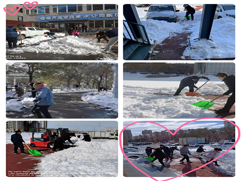 早晨寒冷的飛雪還沒有停,道路不通、公交停運(yùn),許多同志步行很長時間來到工作崗位,第一件事就是清除公司院內(nèi)外、水廠周圍、營業(yè)大廳門前等道路積雪。大家不顧天氣寒冷,掃積雪、鏟冰層、清雜物,干得熱火朝天。黨員干部率先垂范,以實際行動踐行“我為群眾辦實事”的初心使命,展示出黨員干部團(tuán)結(jié)協(xié)作的良好精神風(fēng)貌。風(fēng)雪雖大,卻敵不過眾志成城。公司干部職工齊心協(xié)力,經(jīng)過幾小時的共同奮戰(zhàn),及時保證了公司院內(nèi)外、各廠區(qū)、營業(yè)大廳道路的安全暢通,營造了和諧、友愛的社會環(huán)境,展現(xiàn)了員工良好的集體責(zé)任感和團(tuán)隊協(xié)作精神。