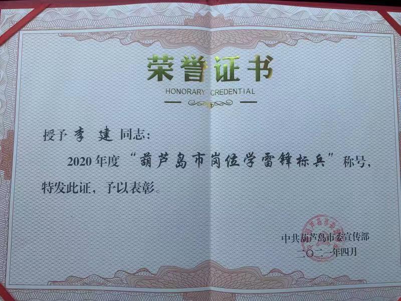近日,市自來水公司綜合部員工李建榮獲葫蘆島市“崗位學雷鋒標兵”榮譽稱號。