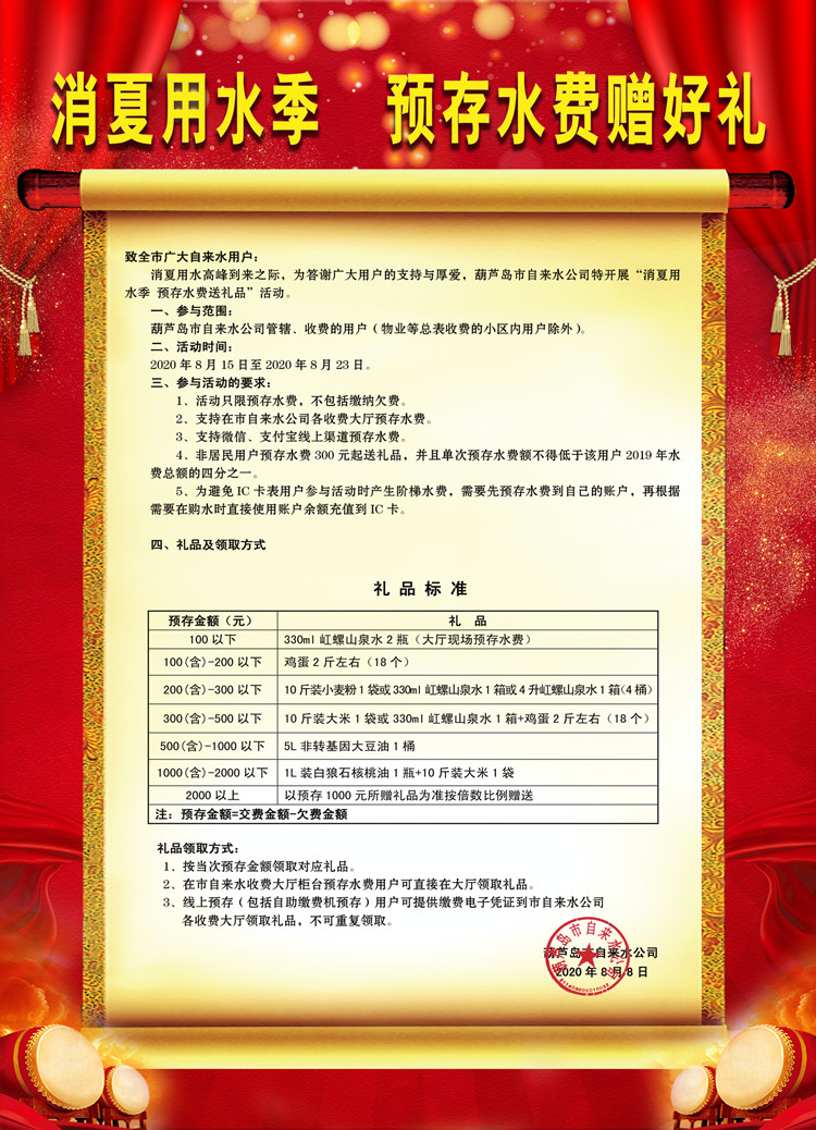 消費(fèi)用水季,預(yù)存水費(fèi)贈(zèng)好禮