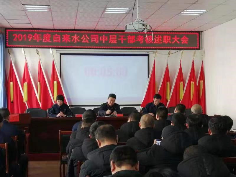最后,公司經(jīng)理李文生在講話中提出四個(gè)方面:一是對(duì)本次考核述職及測(cè)評(píng)表示肯定;二是希望干部職工針對(duì)2020年首季開(kāi)門紅做好任務(wù)分解;三是做好春節(jié)期間安全供水工作,做到應(yīng)急有備;四是嚴(yán)格落實(shí)中央八項(xiàng)規(guī)定要求,過(guò)一個(gè)風(fēng)清氣正、輕松愉快的春節(jié)。