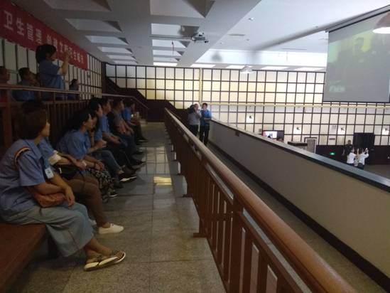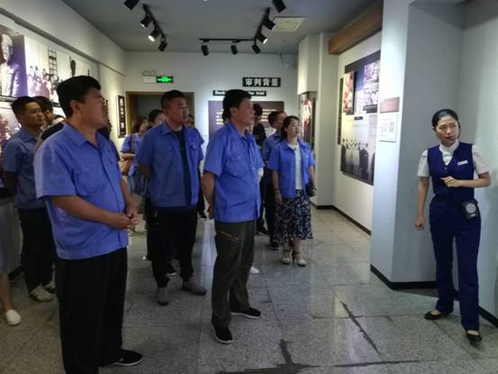 活動的第一站是沈陽審判日本戰(zhàn)犯特別軍事法庭舊址。據(jù)講解員介紹,它是新中國在1956年審判日本戰(zhàn)犯的法庭遺址。陳列展覽包括文字、照片、史料,文物、多媒體演示等展覽形式。展覽共分為“審判背景” “審判準備”“莊嚴審判”“尾聲”等四個部分,全面展示了日本戰(zhàn)犯在沈陽接受審判的整個過程,重現(xiàn)了1956年中國政府成立特別軍事法庭,對日陸軍中將師團長鈴木啟久、偽滿洲國國務院總務長官武部六藏等36名戰(zhàn)犯進行審判的歷史場景。黨員們在現(xiàn)場莊嚴地舉起右拳,面對黨旗宣誓,重溫入黨誓詞,一起回顧入黨初心。宣誓結束后,隨同講解員參觀了各個展廳及復原的公審日本戰(zhàn)犯場景蠟像,觀看了公審日本戰(zhàn)犯的影像紀錄片,這場令中國人民揚眉吐氣的審判,讓大家深刻感受到了中國對待日本戰(zhàn)犯的寬大胸懷,對祖國的敬佩之心油然而生。