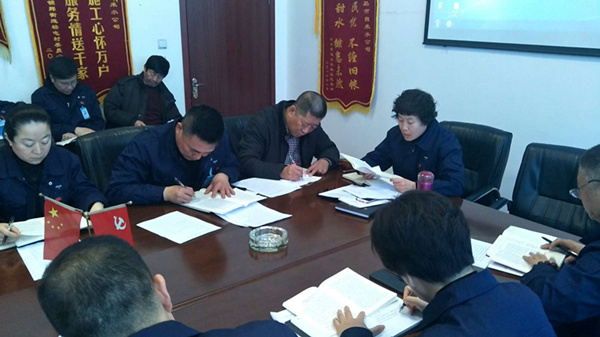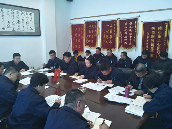 會上集中觀看視頻---《習近平在學習貫徹黨的十九大精神研討班開班式上的重要講話》和《中國共產黨第十九屆中央紀律檢查委員會第二次全體會議公報》,集中學習了《黨的十九大報告》原文第三部分——新時代中國特色社會主義思想和基本方略,下發(fā)了學習資料。通過學習,黨員干部對黨的十九大精神和習近平新時代中國特色社會主義思想有了更加深入的理解。新時代中國特色社會主義是我們黨領導人民進行偉大社會革命的成果,也是我們黨領導人民進行偉大社會革命的繼續(xù),必須一以貫之進行下去。會議強調,我們要全面深入貫徹落實黨的十九大精神,深入理解和把握習近平新時代中國特色社會主義思想,要在聯(lián)系實際,學以致用上下工夫,同時要進一步提高中心組學習的制度化、規(guī)范化水平,中心組全體成員要切實增強學習的主動性和積極性、自覺性,進一步堅定理想信念,牢記黨的宗旨,結合部門實際,提升工作實效,發(fā)揮示范表率作用,用黨的十九大精神指導實踐、推動工作,為公司及供水事業(yè)健康持續(xù)發(fā)展提供堅強保證。