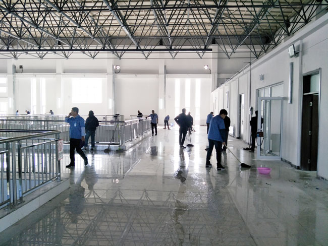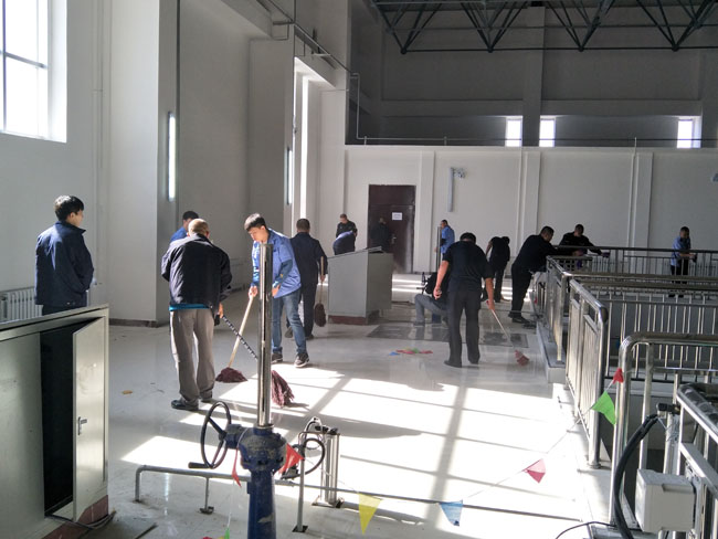 備受矚目的市委市政府重點(diǎn)民心工程青山水源二臺(tái)子凈水廠建設(shè),現(xiàn)已基本完工,水廠即將向我市城區(qū)供水。為凈化廠區(qū)環(huán)境,確保安全供水,公司組織廣大黨員、青年團(tuán)員100余人對(duì)新建的凈水車(chē)間、泵房等進(jìn)行大掃除。上午九點(diǎn),參與人員到達(dá)二臺(tái)子水廠集合,經(jīng)過(guò)簡(jiǎn)單的責(zé)任分工,各支部領(lǐng)取清掃工具后就投入到緊張的工作中。